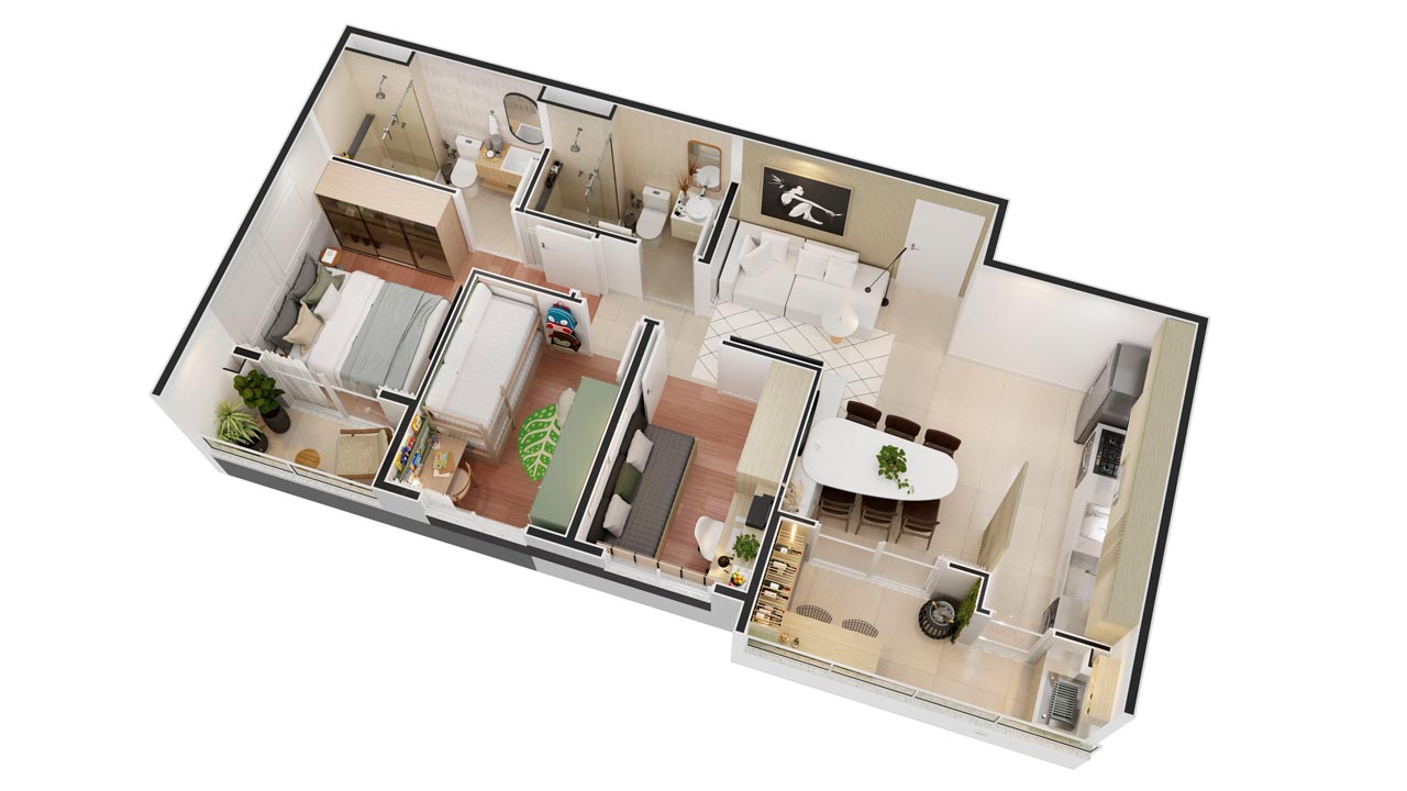 *Imagens meramente ilustrativas, o empreendimento será entregue com os materiais de acabamento e especificações constantes no memorial de incorporação e projetos aprovados, os quais prevalecem sobre as concepções artísticas acima. Por se tratar de imóvel a ser construído, as características gerais poderão sofrer alteração sem aviso prévio. O paisagismo é meramente ilustrativo e não integra o projeto. Mobiliário meramente ilustrativo e não integra o projeto, salvo previsão específica no memorial de incorporação. Consulte condições comerciais com um consultor.